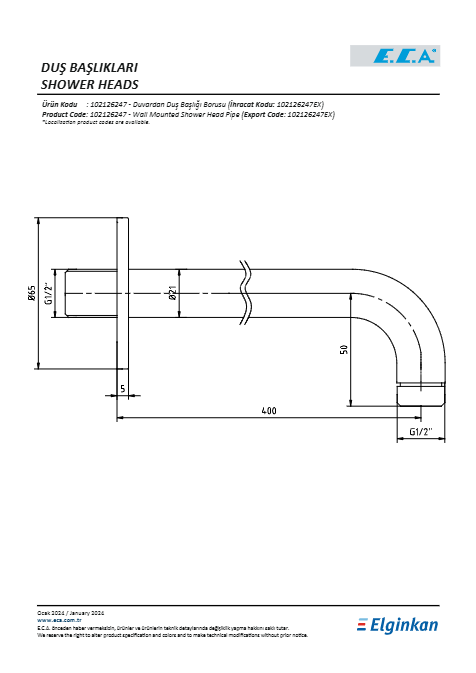ECA Duvardan Duş Başlığı Borusu